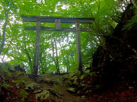 | 奥宮という額のかかった鳥居。ここが実質的な雲取山、妙法ヶ岳に向う道の入口。 |