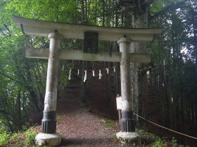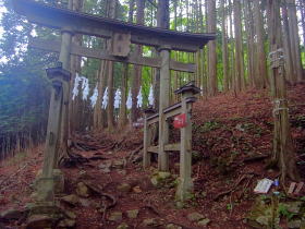 | 奥宮分岐に戻らずに雲取山に向かう道に行く分岐の鳥居。その道は通行止でした。 |