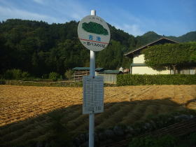 | 古池バス停。大滝温泉から車で登山口に向かいましたが猪狩神社への分岐を見落とし、バス停まで戻って車を帰しました。 |