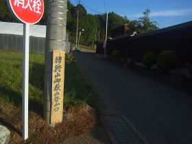 | 傍の電柱にも道標がありましたが、これも看板の陰になっているうえちょっと奥まっていて車からは見にくい所ありました。 |