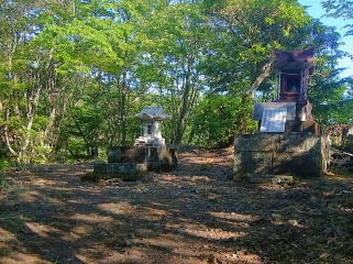 | 祠がふたつある峰。ここから先の道はゆるやかな所が多くなりました。 |