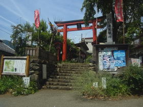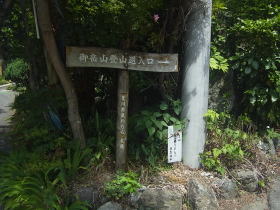 | 普寛神社。前に御岳山(おんたけさん)と書いた案内があります。 |