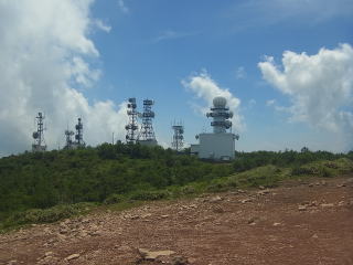 | 駒ケ岳山頂から見る長七郎山(左)とアンテナ群で目立つ地蔵岳(右) |
