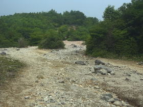 | 長七郎山山頂付近のガレ場。どこかで見たことのあるような景観でした。 |