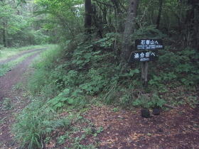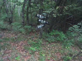 | 血の滝分岐。血の滝には帰りの寄ることにして石尊山に向う。 |