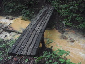 | 血の滝の注ぎ口近くのこの橋を渡る。 |