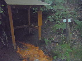 | 登山道の分岐近くにある源泉。水の湧き出し口で温かくはありませんでした。 |