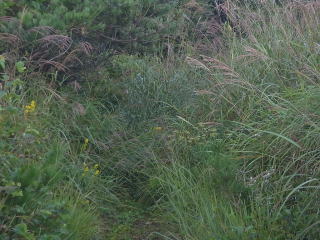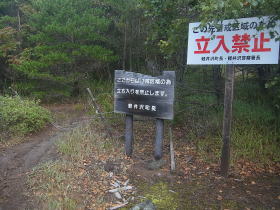 | 二つの登山道の合流地点。私が辿って来た方は立入禁止でした。知らずに立ち入り禁止区域に入ってしまいました。 |