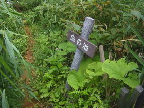 | 帰路、もうひとつのルートで血の池に近づくと血の池らいい池がありましたが『おはぐろ池』と書いてありました。 |