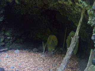 | 帰路、血の滝分岐から滝を見に行きました。滝の近くに洞窟があり仏像がありました。 |