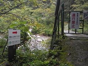 | 橋には積雪のある時は通行禁止と書いてあり、積雪はないはずなのに閉ざされていました。 |