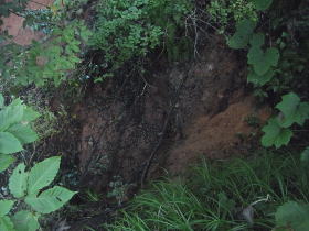 | 沢から離れてちょっと進むと別の沢を渡るところで崩落していました。 |