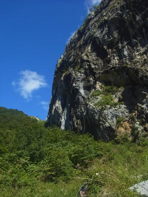 | 山頂まで行かれなかったの残念ですが、天気に恵まれ岩壁の景観や花を大いに楽しむことができました。後から考えると登山口の橋の入口に『積雪のある時は通行禁止』と書かれているのに、積雪のない時期にもかかわらず針金で厳重に閉鎖されていたのは登山道が崩落しているためだったのかもしれません。でも登山道の崩落に関する注意書きなどは見当たりませんでした。 |