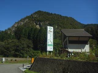 | 小滝川ヒスイ峡フィッシングパークの駐車場。背景は明星山。 |