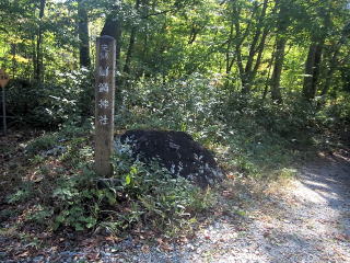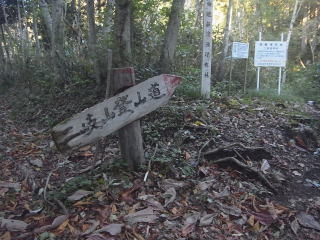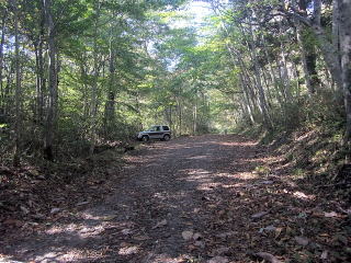 | 二岐山御鍋登山口。私は駐車場から歩きましたが、この辺りは林道の幅が広くなっていて、登ってここに戻って来た時には登山者のものらしい車が1台止まっていました。5~6台は止まれそうです。 |