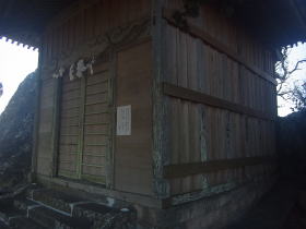 神社は山頂からほんの僅かに下がった強い風を避けられるところに建ててあるようです。