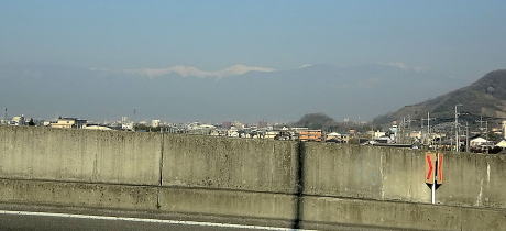 | 石和温泉駅近くのJRを跨ぐ道路から見る南アルプス |