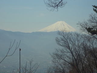 | P905。木立の間に白く輝く南アルプスの山が見える。 |