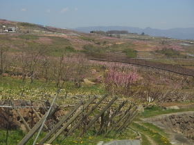 | 下山後は春日居町の桃の花でピンクに染まる景色を楽しみつつ、道には迷いながら春日居町駅に着きました。 |