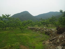 | 博物館に戻る途中の車道から見る蜂城山 |