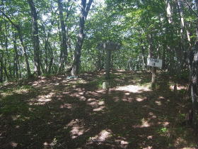 | 達沢山。蜂城山に向かう山頂付近のルートははっきりしませんでしたが、ちょっと下ると非常に明瞭な道になりました。調子よく下ると2.5万図にある旭山に向かう道に入っていることに気付き戻りました。 |