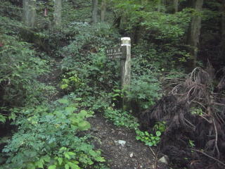| 5号橋駐車場の道標。入山届の箱があり、提出。 |