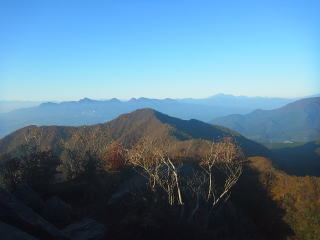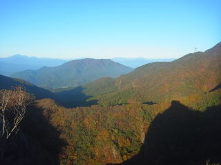 | 反射板付近から見る浅間山。下の方に岩壁が見えました。 |