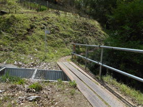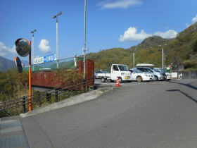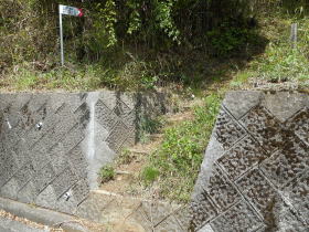| 林道横断地点先の車道出合。真木の登山口。 |