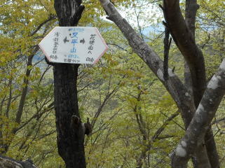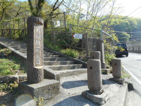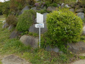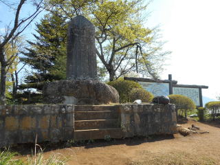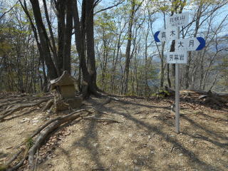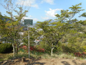 | 岩殿山という山名標の近くの石碑。山頂ではないが眺望が良い。 |