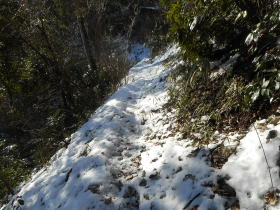 | 山頂に向かう道の雪は多いところでこの程度 |