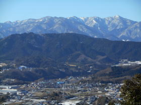 | 山頂からの眺望。遠くに見えるのは丹沢か。 |