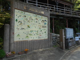 | 地図を頼りに辿り着いた日和田山入口。日和田山(岩場・頂上)へと書かれた道標。 |