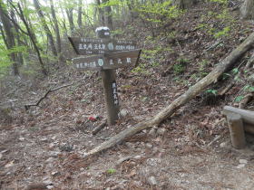 | 昨年はツツジ山を経て刈場坂峠に出ました。今回逆方向に辿ってみるとザレた急な下りがあり大変でした。登った時には何も感じなかったので私にとっては下りのほうが厳しいルートだったようです。 |