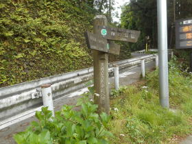 | 車道に下り、この道標に従って大澄山に向かいましたが遠回りだったようです。 |