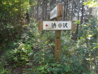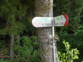 | 三日月峠に戻り浜沢に向かう。ここから二十六夜山の分岐までは急斜面をトラバースする細くてザレ気味の道で慎重に歩く。 |