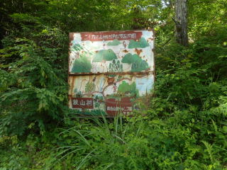 | 登山口の案内と道標。ここから山道に入るがすぐに林道に出て、林道を少し歩いてから登山道に。 |
