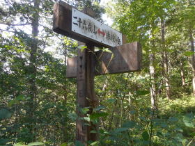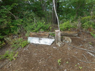 | 道標は落ちて朽ちていて棚ノ入山とは読めなかったがここが棚ノ入山らしい。 |
