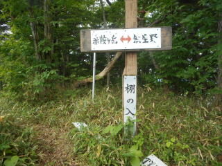 | 無生野分岐の道標。棚ノ入山と書いてあるが2.5万図の棚ノ入山とは一致しない。 |