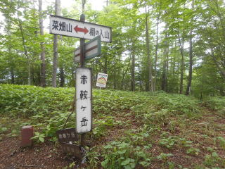 | 赤鞍ヶ岳。眺望はないものの広々としたなだらかな山頂で、緑が綺麗。 |