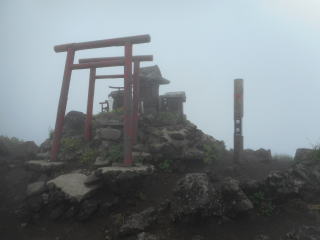| 八合目小屋に戻ってきました。雨に降られることはなく非常についていました。この時期で雨に降られることなく歩けたのは幸運とか言いようがありません。 ここを出発した時の深い霧はウソのようで雨に降られる心配はなくなっていました。 花の写真を撮れなかったのでまたここに来たくなりました。 |
