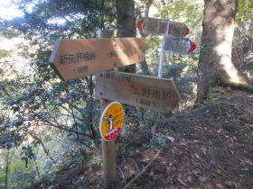| 丸山と大地峠付近は山道が林道で切れているところがあり林道から山道に入る道標を見落とすのが心配でした。8年ほど前にこの辺りを歩いたときの記録を見ていて、このあたりで甚之函山に寄るつもりだったのに見落して寄れなかったことを思い出しました。 |