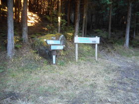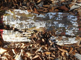 | 朽ちた道標。湧水峠、熊森山が読める。 |