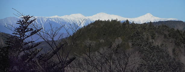 | 長者ヶ岳から見る白峰三山。右から北岳、間ノ岳、農鳥岳。 |