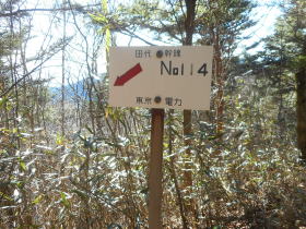 | 天狗岳山頂間近の東電の巡視路のガイド。 |