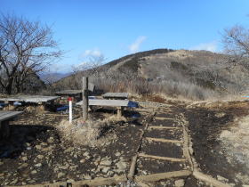 | ルートの大部分は何度か歩いていて新味がありませんが二ノ塔から菩提峠に下るときに歩いたことない日本武尊足跡を辿ることにして変化を付けました。 標高の高いところには雪があるところがありましたが、雪の踏跡が凍っていて歩きやすい状態でした。アイゼンを使わなければならないところは全くありませんでした。 |