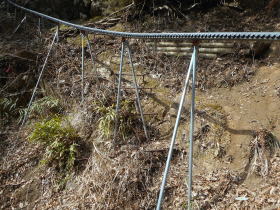 | 屏風尾根取付。取付きのモノレールの下に鉄棒のステップがあったので取り付く。地形からすると尾根の末端あたりに取り付ける道があったかもしれない。 |