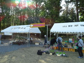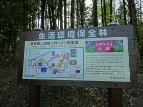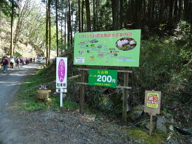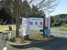 | カタクリ山公園入口。駐車場の整理の係員いて駐車は有料ですが、公園の入場は無料でした。 |