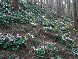 | イワウチワの群落。広い範囲に渡ってイワウチワが群生し、写真で全容を捉えることはできません。 |