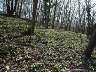 | カタクリ山公園カタクリ。関東最大規模のカタクリ群生地と書いてあり、私が今まで見た中では最も大きな群生地でした。 |