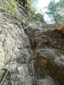 | 鎖のある岩場。しっかりとした足の置き場があり歩きやすいが落ちたら終わりなので慎重に。 |